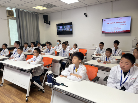 活动内容主要由科技讲座“化学元素的奇妙世界”、实验室安全培训;化学魔术实验;小小化学家研学实验三大部分组成。小朋友们和老师一起走进化学的奇妙世界,聆听化学趣味故事,感受元素的多样性,惊叹小小的化学魔术实验,寻找特工密信之谜,亲身体验中国传统的染色技艺,整个活动过程中小朋友们在老师的带领全身心的投入到这场趣味的七彩化学特别之旅中,脸上洋溢着渴望探索实践的笑容,活力澎湃,积极参与,活动氛围十分热烈。