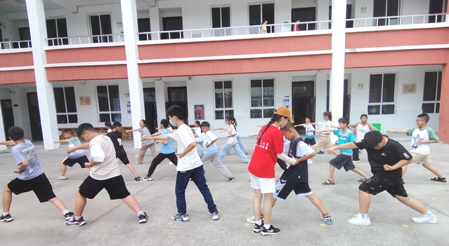 挖掘体育精华,体悟传统魅力。习近平总书记强调“体育锻炼是增强少年儿童体质最有效的手段”。支教团成员组织同学们进行风筝的DIY涂色制作并开展“放飞风筝,高飞梦想”等比赛,将趣味性引入活动之中,融体育锻炼和动手实践为一体。另外,为传承优秀传统健身文化,支教团成员开展《五步拳》和《国家规定拳》的课程,增强学生的身体协调能力和力量感。