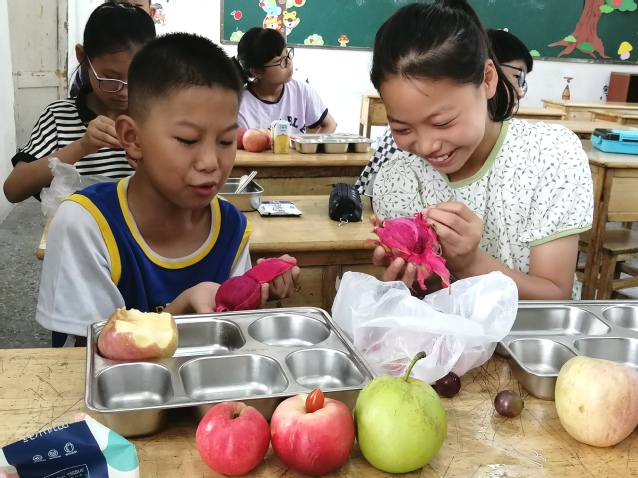 体会“烹”然心动,感受“厨”类拔萃。为激发小学生们的好奇心和想象力,一步步、一层层地深入探索食物搭配的奥秘,青葵支教团组织了以“水果拼拼乐”为主题的厨艺活动。本次活动在保证安全的前提下让学生们从直接感知、实际操作、亲身体验和制作品尝几个不同的维度感受了亲手制作食物的巨大魅力,有利于提高小学生们的创造力、专注力和做事的条理性。