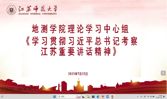 7月25日下午,地测学院党委理论学习中心组召开集中学习会,深入学习贯彻习近平总书记考察江苏重要讲话精神。学院党委理论学习中心组成员参加学习。会议由院党委书记尹燕萍主持。
