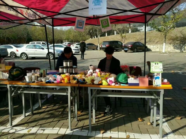 上午9:00,义卖活动开始,服务队以摆摊的形式向同学们售卖所回收的物品。售卖的物品非常丰富,包括生活用品、学习用品以及一些可爱的玩偶。在大家的吆喝下,前来购买的同学络绎不绝,随着活动时间的推移,收集的物品也渐渐变少。队员们在寒冷的风中瑟瑟发抖,搓了搓手,但看到空了大半的摊位,不由自主的绽放了灿烂的笑容。每个人在这次工作中都很积极,也因为有了大家的积极配合,义卖活动才能这么有序的进行。下午三点,在整理好物品及售卖成果后,义卖活动圆满结束。