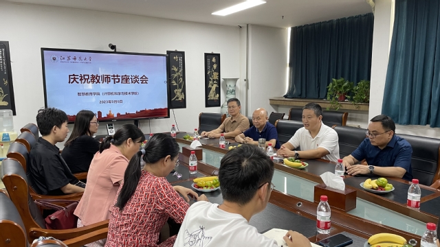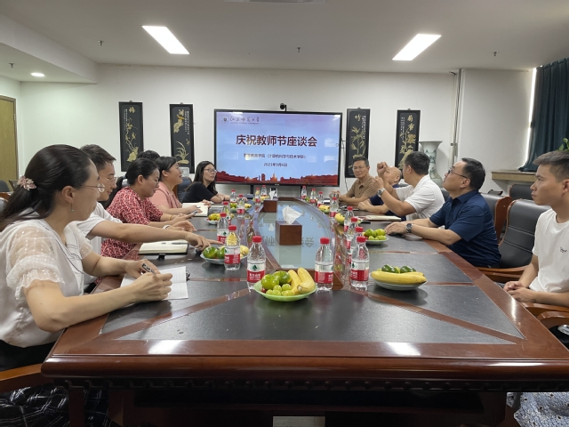 为庆祝第39个教师节,团结广大教师坚决落实立德树人根本任务,9月6日下午,智慧教育学院召开教师节教师代表座谈会,会议由党委书记周显洋主持,学院老教师、青年骨干教师、新入职教师等代表参加座谈。