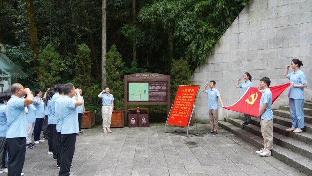 全体党员首先来到井冈山革命烈士陵园,在纪念堂吊唁大厅,向浴血井冈、长眠青山的革命烈士敬献花圈、瞻仰默哀,在纪念堂外,全体党员面向鲜红党旗,高举右拳,重温入党誓词,铮铮誓言回荡在陵园上空。党日活动期间,全体党员先后来到茨坪毛主席故居、井冈山革命博物馆、黄洋界哨口、红军造币厂、小井中国红军第四军医院旧址、大井朱毛旧居、南山星火广场等现场教学点,认真倾听一个个用理想信念、热血牺牲铸就的革命故事,跨越时空,重温光辉历史,共同追忆井冈山斗争的峥嵘岁月。