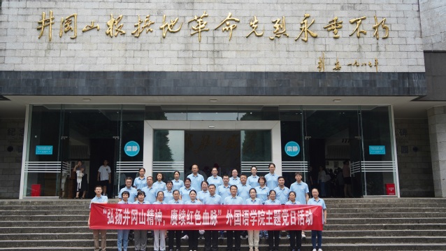 为深入贯彻落实党的二十大精神,推动学习贯彻习近平新时代中国特色社会主义思想主题教育走深走实,进一步坚定理想信念,汲取奋进力量,激发工作斗志。八月下旬,外国语学院党委组织教工党员赴井冈山开展“弘扬井冈山精神,赓续红色血脉”主题党日活动。