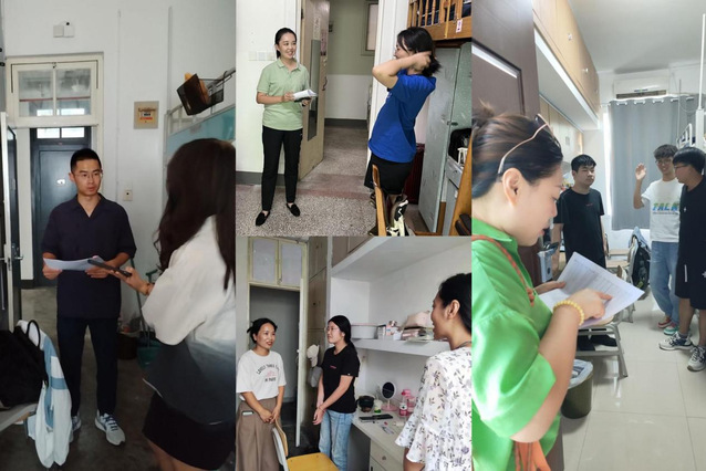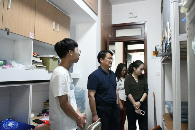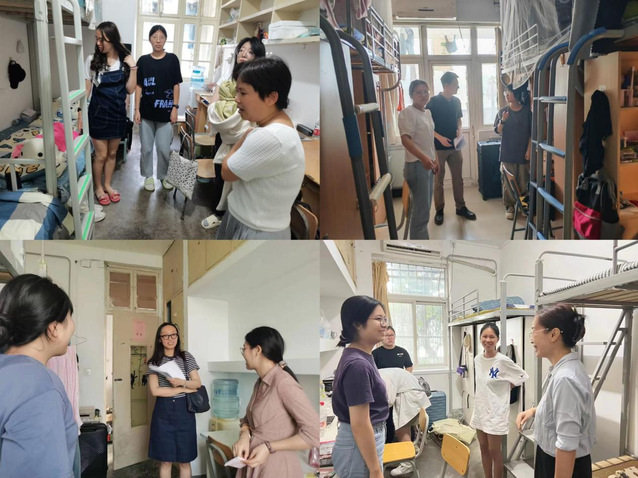 报到期间,院长于涛等学院领导来到2023级新生宿舍进行走访,与新生和家长进行亲切交流,对新生们表达关心和慰问。新生班主任和辅导员逐一走访新生宿舍,了解新生的入学状态、倾听家长的实际诉求、检查宿舍的各项设施,及时发现问题并采取相应措施,帮助新生尽快适应生活环境。宿舍是同学们的第二个家,老师们在走访中叮嘱新生要强化宿舍安全意识,学会集体住宿的相处之道,为打造安全、清洁、和谐的“文明宿舍”而共同努力。