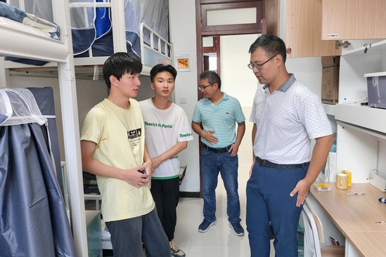 报到当日,机电工程学院党委书记何莉娜、院长李顺才、党委副书记陈晓林、副院长陆向宁、副院长杨道龙等领导班子成员以及全体新生班主任、辅导员深入新生宿舍,走访看望2023级新同学,详细了解新生们的住宿条件和生活情况,向他们表达学院的亲切关怀和殷切期望。同时,领导们也向新生和家长们介绍了学院的教学资源和培养计划,鼓励同学们发挥自己的特长,为实现个人发展目标奋斗。