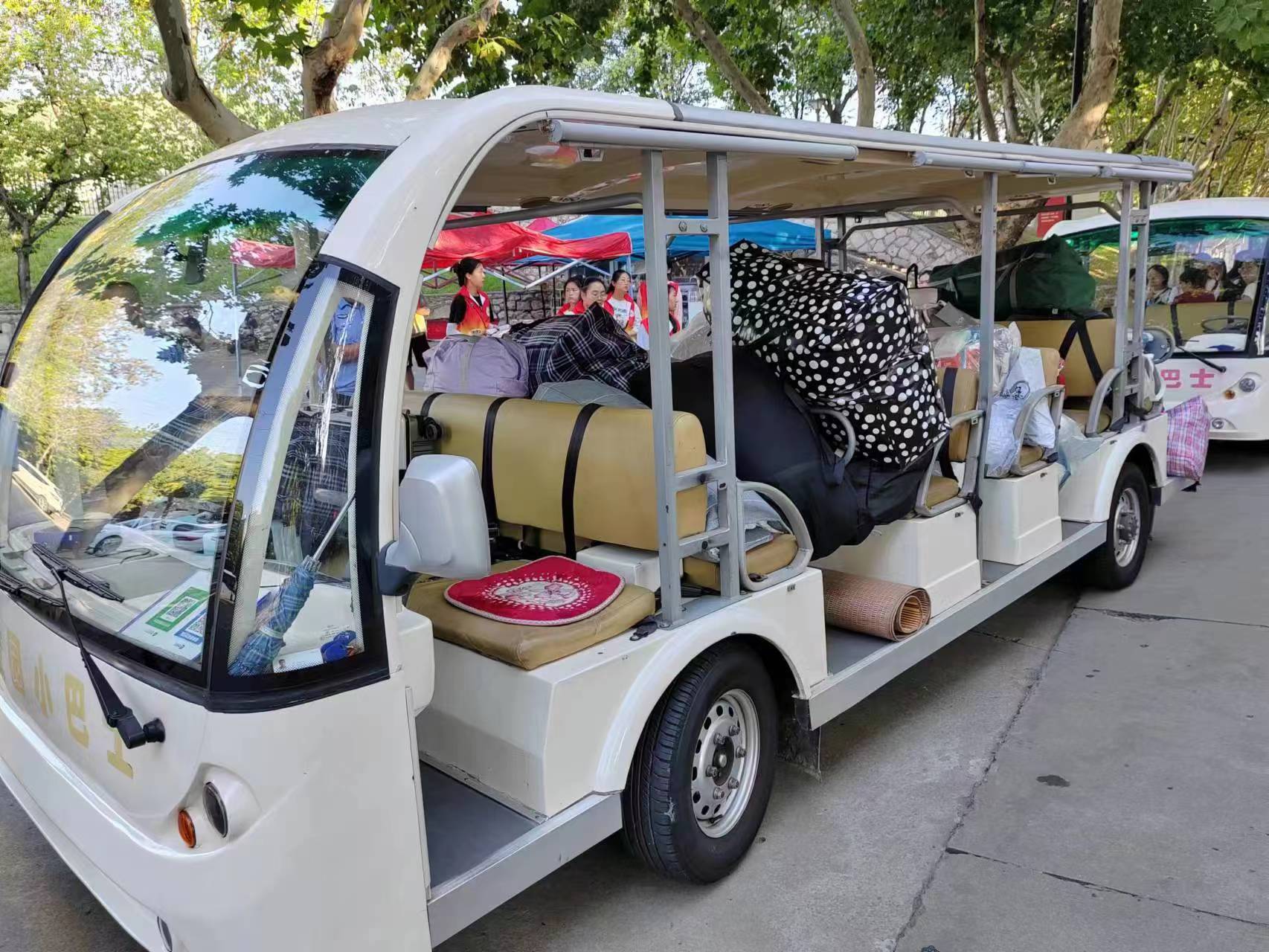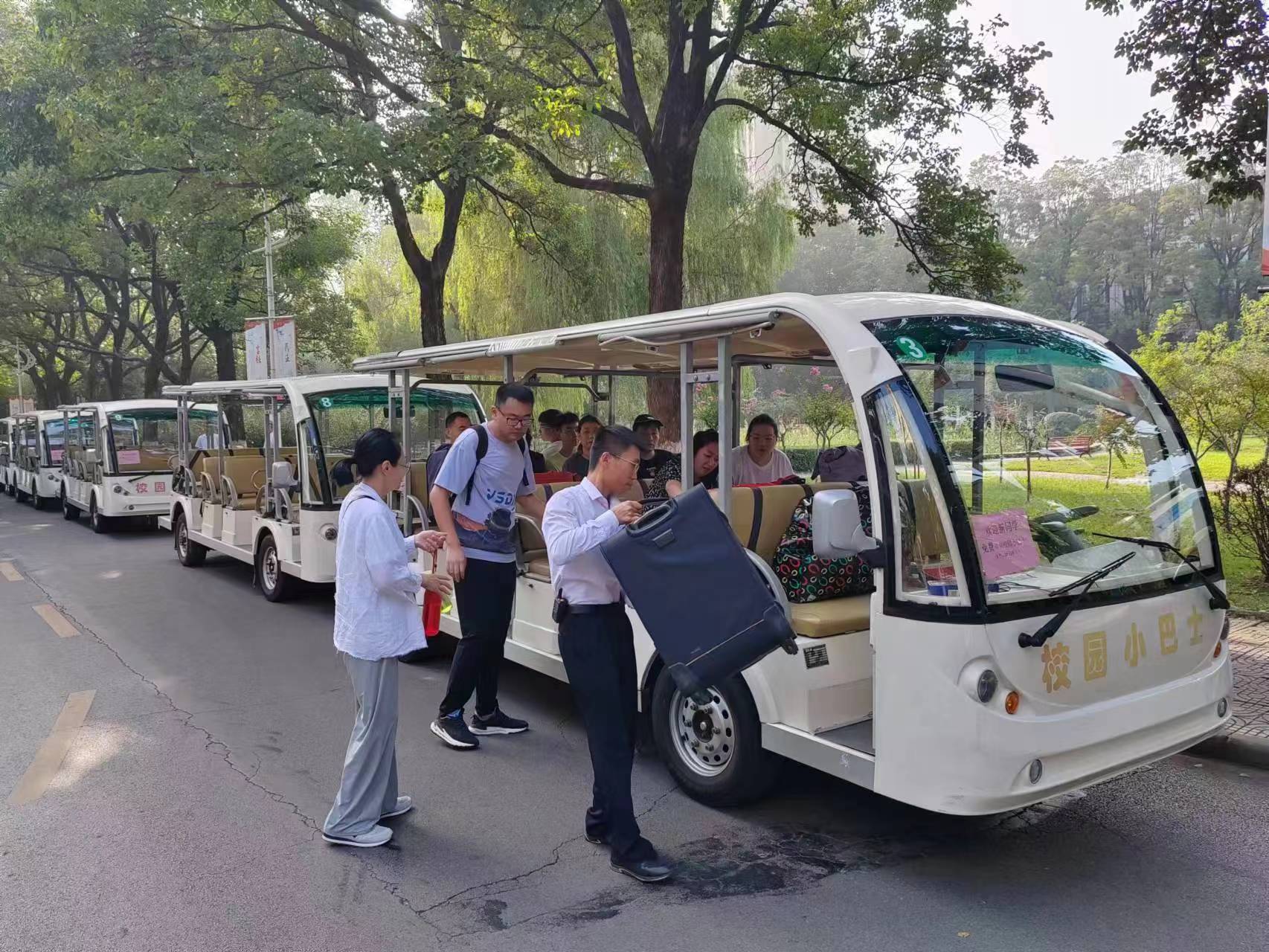 交通服务,做到宾至如归。运输服务中心为新生做好车辆接站服务保障,确保车辆安全,提供有温度的迎新服务,提前对所有车辆进行全面检查,共计安排20辆大客车,与50余名工作人员做好迎新接站工作。他们分别在徐州火车站和高铁站搭建了帐篷,设立迎新接站点。9月9日至10日共运行89班次,迎接新生及家长约4000余人次,校内小巴士12辆参与校内接送新生,并在9日至10日两天,为新生提供免费乘坐校园巴士服务。接站人员不辞辛苦,每有新生到来,他们总会热情地帮忙引路、提行李、搬物品,只为确保迎新车辆做到运行“安全、高效,体贴、周到”。
