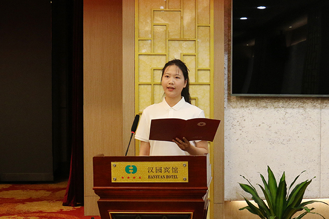硕士研究生代表、2021级新闻与传播专业王路瑶随后发言,她与同学们分享了自己学习成长中的感悟和思考:一是做学无止境的求知者,保持钻研学术的耐心和决心;二是做不忘责任的践行者,把论文写在祖国大地;三是做心怀感恩的追梦人,在火热实践中绽放青春芳华。