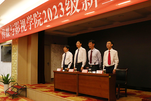 9月11日上午,传媒与影视学院在校师资培训中心二楼报告厅举行2023级新生开学典礼。院党委书记赵永前、院党委副书记张存钊、副院长李忠、副院长何靖,部分教师和高年级学生代表,以及2023级68名硕士研究生和195名本科生参加典礼。张存钊副书记主持典礼。