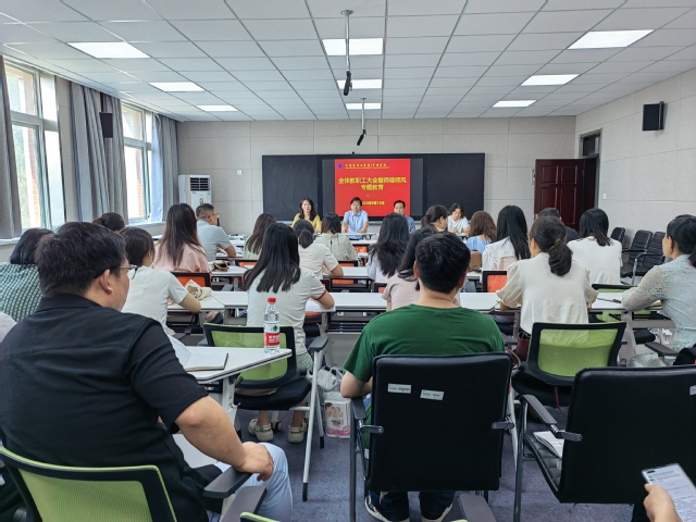 9月13日下午,江苏圣理工学院-中俄学院在学院402会议室开展全体教职工大会暨师德师风专题教育。会议由学院党委书记冯遵永主持,全体教职工参加。