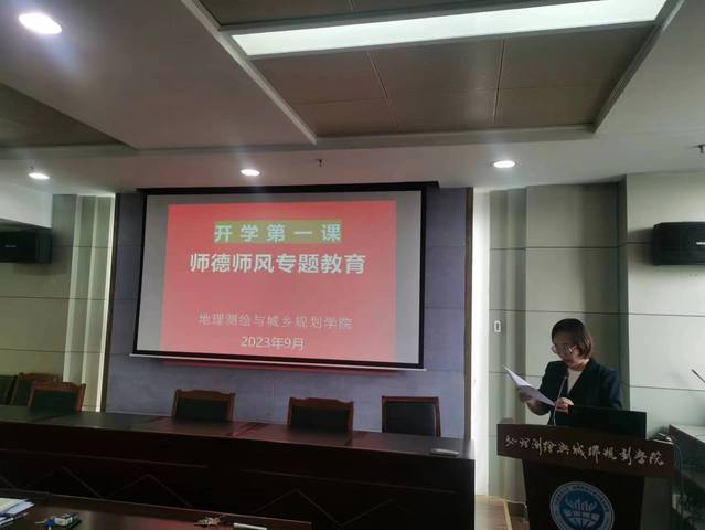 三尺讲台承希望,师德师风引航向。9月13日下午,地测学院在静远楼1307会议室召开了教职工大会暨师德师风教育“开学第一课”,会议由学院党委书记尹燕萍主持。全院教职工出席了本次会议。