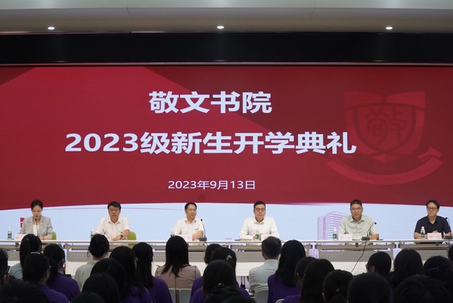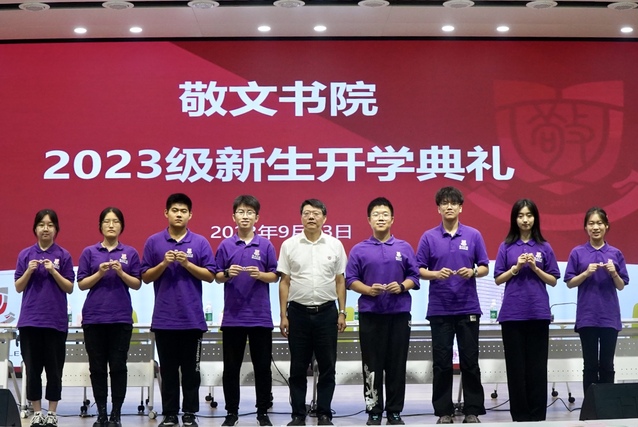 9月13日上午,敬文书院2023级新生开学典礼在路演大厅隆重举行。校长周汝光、副校长赵鹏,导师代表生命科学学院田俊教授出席典礼。敬文书院全体教职工及2023级全体新生参加典礼,新生家长通过直播收看开学典礼。典礼由院党委副书记杜昀主持。