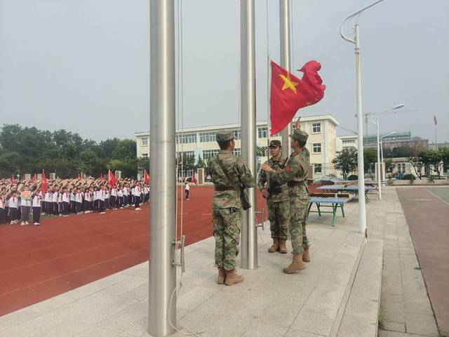 9月18日清晨,我校举行“勿忘国耻·强我国防”为主题的升旗仪式。