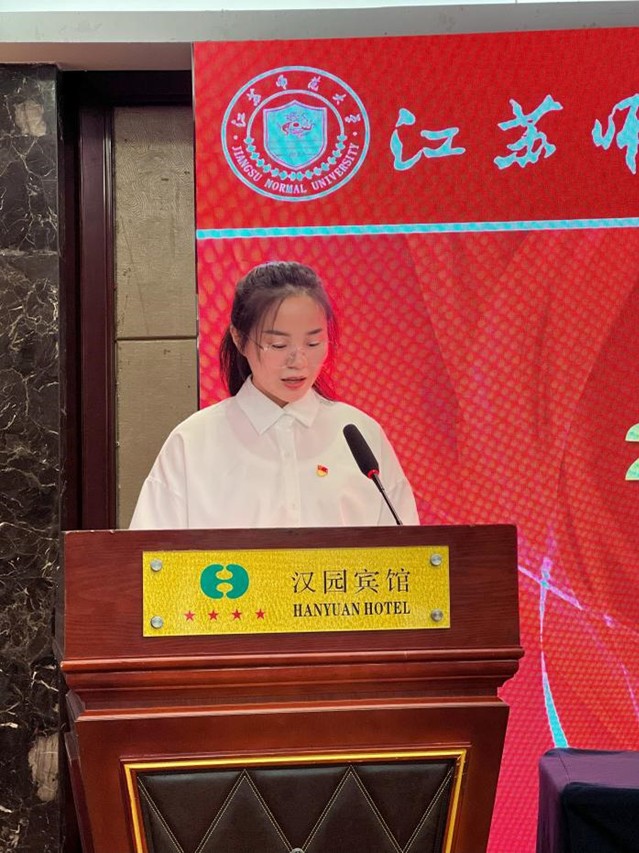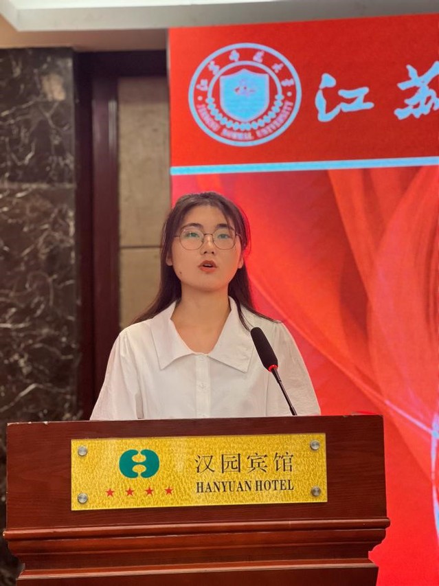 接着,在师生代表发言环节,教师代表周定财教授希望同学们在新阶段学习过程中不仅能在问题观、认识论和方法论三个层面形成新旧范式转变,更要能将三者融为一体,从知识吸收者过渡到知识创造者,完成个人成长道路上的范式转变。同时寄语新生在复兴路上奋勇争先、在学业路上行稳致远、在成长路上携手共进。研究生代表侯婉婷同学从目标、坚持、责任等三个方面与大家共勉,鼓励大家心有所信,不忘理想追求;知行合一,全面锤炼成长;无远弗届,秉持开放胸怀,在新征程上激发青春斗志,书写青春华章。本科生代表周也同学分享了个人成长历程,号召新生同学在今后更须秉承“宝剑锋从磨砺出,梅花香自苦寒来”的坚韧不拔,怀揣“黄沙百战穿金甲,不破楼兰终不还”的爱国热忱,坚守“穷且益坚,不坠青云之志”的抱负信念,用努力和汗水创造精彩人生。