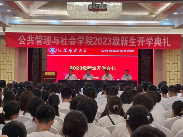 2023年9月14日上午,公共管理与社会学院举行2023级新生开学典礼。学院领导班子、各专业教师代表、辅导员、班主任、老生代表以及2023级全体新生出席典礼。典礼由学院党委副书记杨仲迎主持。