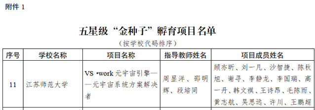 近日,由江苏省教育厅主办、省高校招生就业指导服务中心(以下简称省招就中心)负责组织实施的2023年度江苏省“金种子”孵育项目遴选结果公布,智慧教育学院“VS·work元宇宙引擎——元宇宙系统方案解决者”项目成功入选最高级别“五星级”孵育项目(全省20项)。