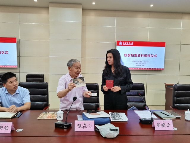 9月18日下午,我校原美术系书记甄在心将个人珍藏多年的档案资料捐赠给档案馆(校史馆),捐赠仪式在分析测试中心102会议室举行。仪式由档案馆副馆长周晓云主持,教育发展基金会(校友联谊会)办公室主任高田钦、国际学院副院长甄宇彤及档案馆(校史馆)全馆人员参加了捐赠仪式。