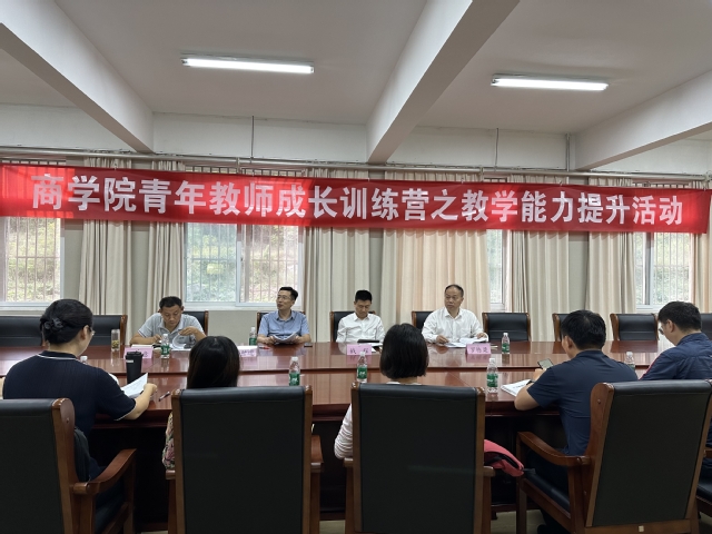 2023年9月20日下午,商学院举办了首期“青年教师成长训练营之教学能力提升”活动。书记钱程、院长罗栋梁、副院长王世进,全院16位青年教师参加活动。活动分为三个环节,首先学习学校、学院最新的教学文件;其次,开展教师教学观摩课活动,最后,向新任青年教师导师颁发聘书。