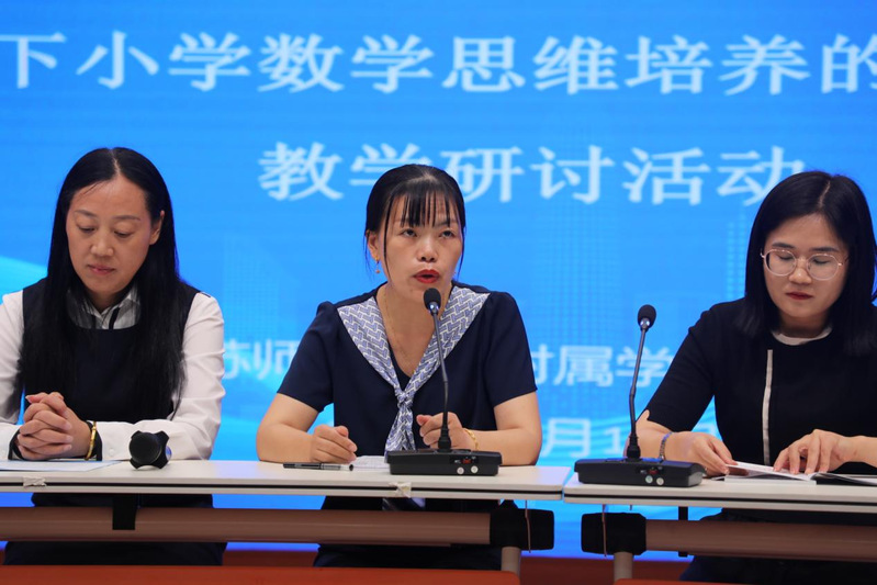 在课堂观摩环节,江苏师范大学附属学校吕子旭老师执教课程《乘法的初步认识》,徐州大学路实验学校刘站美老师执教课程《简单的周期》,郑集实验小学田庄小学唐佳琨老师执教课程《用字母表示数》。三位老师在教学过程中坚持以学生为主体,当好引导者,关注全体同学的课堂状态,适时为学生提供表现自己的机会,注重讲与练的有机结合,做到了教学相长。课堂观摩环节结束后,铜山区教师发展中心研训处主任朱爱玲介绍了本次活动的意义,希望全区教师进一步明确数学教育的使命,通过数学教学引领学生思维能力的发展。朱主任强调,思维能力的发展要注重三个融合:操作与表达的融合、表达与推理的融合、推理和建模的融合。随后,三所学校的教研团队代表赵凌霜、桑云、赵艳依次对课堂进行了点评。