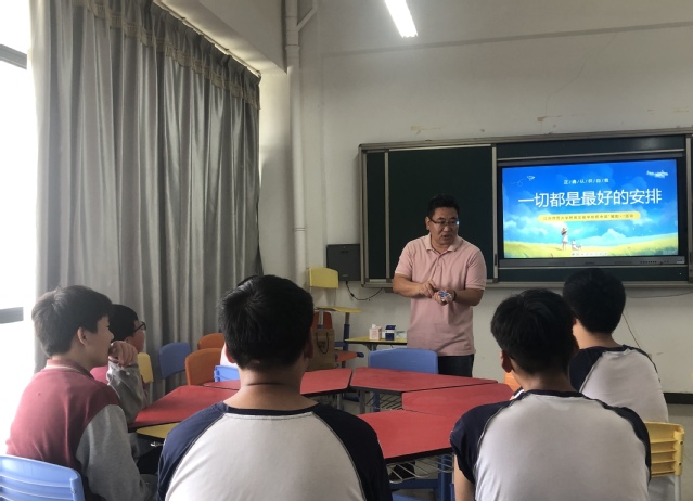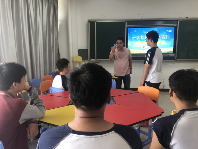 观看《一切都是最好的安排》视频,同学们纷纷低头思考。