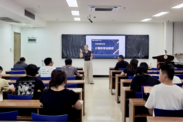 本次活动特邀徐州新东方前途出国陈岑和时维巍老师,从热门留学国家概况、考研留学同步规划、高效备考雅思、出国读博等几方面,展开了具体的介绍。老师们分析了计算机相关专业的就业现状,鼓励同学们提前规划,提升自身能力,充分发挥专业优势。重点阐述了雅思和托福的重要性,并从考试题型、成绩计算、时间分配、考情分析、学习路径、教材推荐等方面进行了普及。最后两位老师与参会学生互动交流,耐心解答了同学们的疑难困惑。