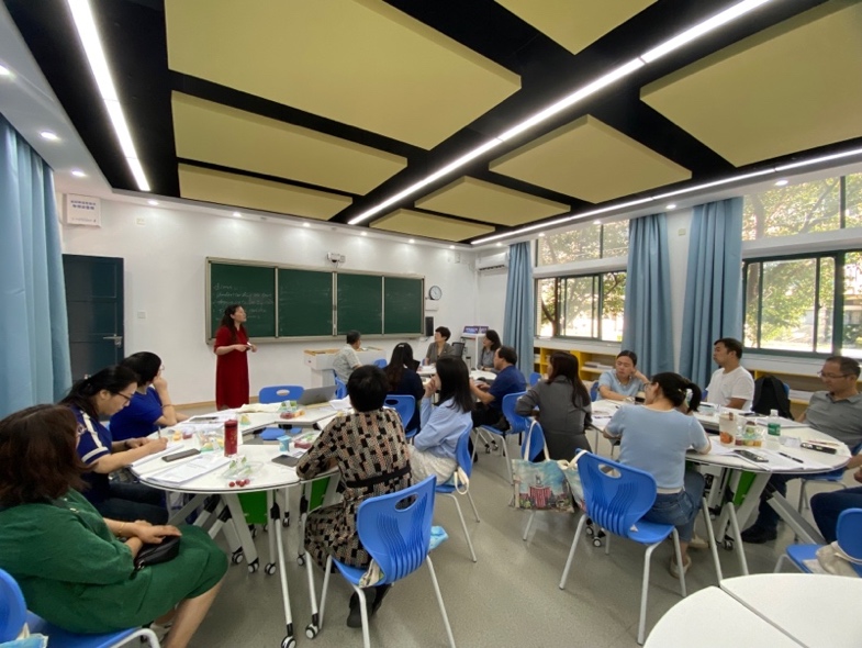 22日下午,在盐城中学教学楼,各学科分别进行了“教育教学热点问题对话”。首先,各位专家对上午的课例进行研讨点评,提出改进意见;其次,高校教师对当下火热的“大单元教学”、“学习任务群教学”等问题做出回应,指出教学不是为了任务而任务;最后,中学教师就现阶段教学中存在的问题提出疑惑,寻求专家指导,高校教师结合自身经验给予相应建议。