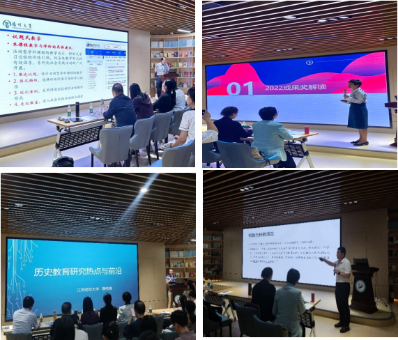 开幕式后,扬州大学吴峰教授作微报告,探讨了思政教育热点问题。盐城中学校长朱俊分享了从“阅读”到“悦读”——高中英语整本书阅读实践探索。江苏师范大学薛伟强教授,作了“历史教育研究热点与前言”汇报。江苏师范大学魏本亚教授,提出了“基础教育改革四问”的问题。