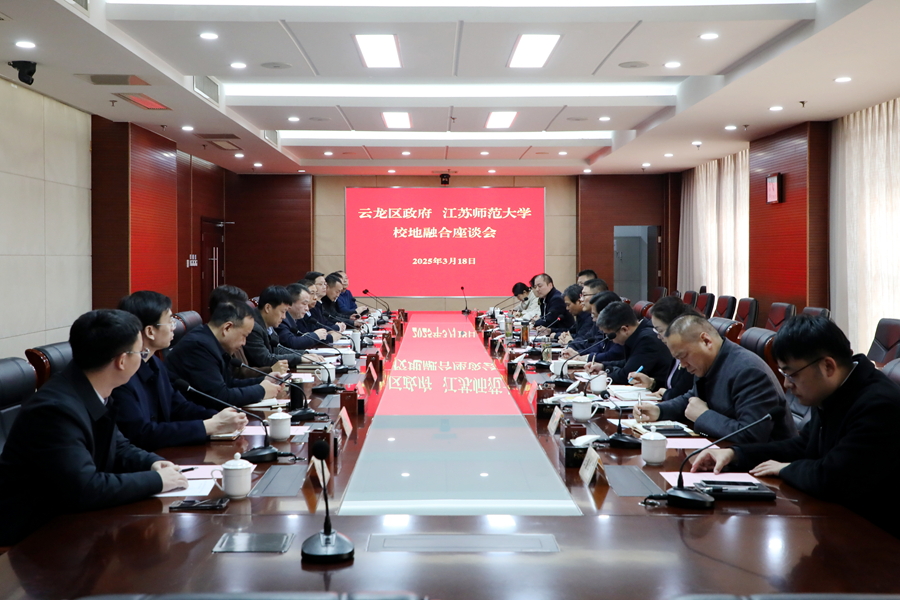 3月18日上午,校党委书记芮国强,校长杜增吉率队到徐州市云龙区开展校地融合发展调研,与云龙区政府洽谈校地合作事宜。副校长董晓臣、商亮,徐州市云龙区委书记陈婕,区委副书记、区长郑伟,区委副书记李强,以及我校和云龙区委区政府有关部门负责同志参加活动。