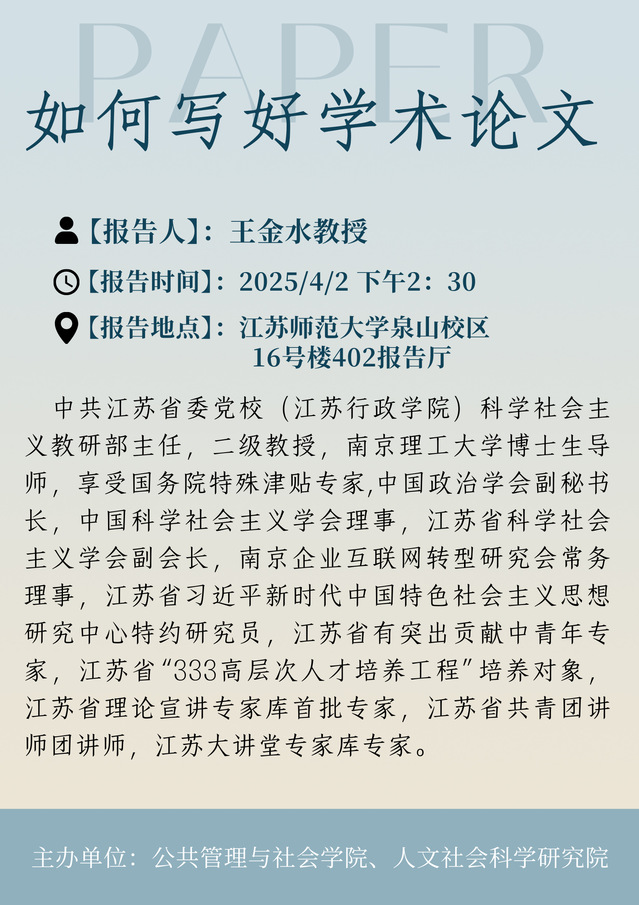 4月2日 王金水教授学术讲座(公共管理与社会学院)