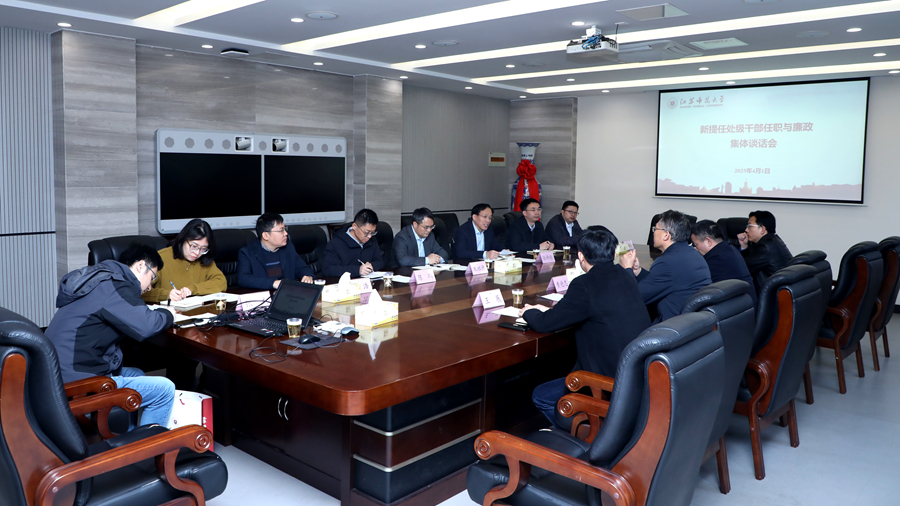 4月1日上午,我校举行新提任处级干部任职与廉政谈话会。校党委书记芮国强出席会议,校纪委和党委组织部相关负责同志、新提任的7名处级干部参加会议。会议由校党委常委、组织部部长、统战部部长黄德志主持。