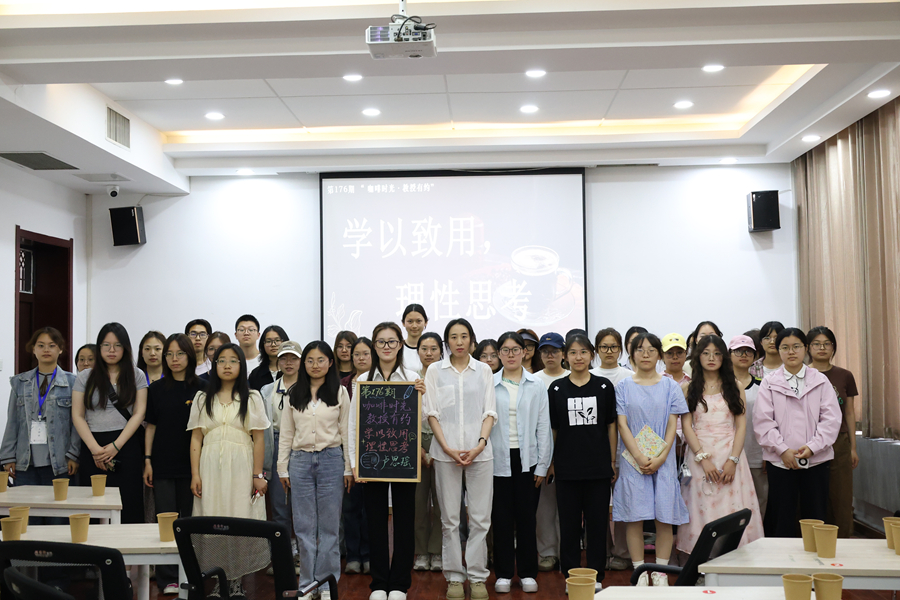 4月18日下午,第176期“咖啡时光·教授有约”活动在云龙校区“一站式”学生社区党建工作室举行。语言科学与艺术学院卢思瑶教授就“学以致用,理性思考”这一主题与在场同学进行交流。