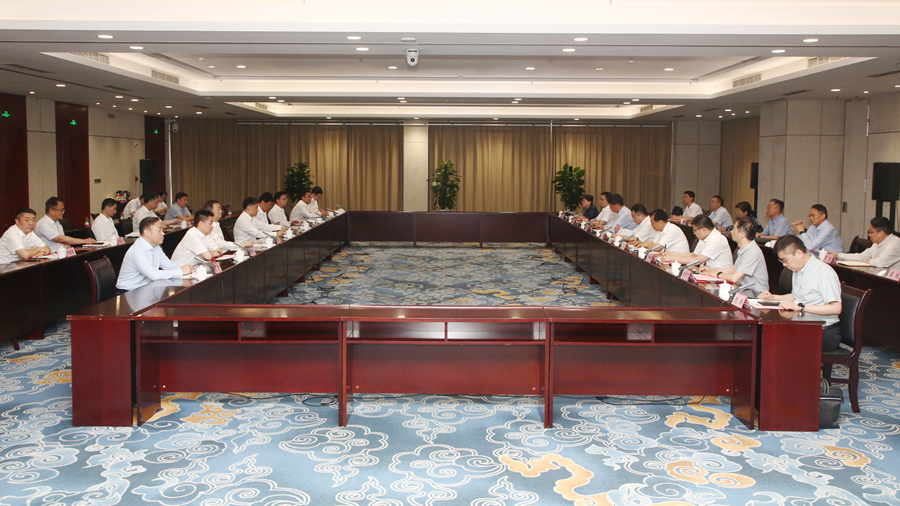 5月21日下午,我校赴徐矿集团举办党委理论学习中心组(扩大)学习会,深入学习领会习近平经济思想,同时开展访企拓岗促就业活动。校党委书记芮国强主持会议并讲话。校党委理论学习中心组全体成员,党委办公室、科学技术研究院、教务处、研究生院、学工处、国内合作处等部门负责同志参加学习。徐矿集团党委书记、董事长吴宁,总经理、党委副书记于洋以及其他领导班子成员和各部门主要负责同志接待了我校的参观调研。