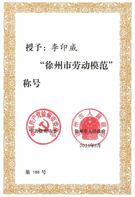 5月28日,2025年徐州市劳动模范表彰大会在市会议中心隆重举行。大会表彰了自2022年以来在全市各条战线、多个行业领域为徐州高质量发展作出突出贡献的197名劳动模范。我校物理与电子工程学院院长李印威教授荣获“徐州市劳动模范”称号。