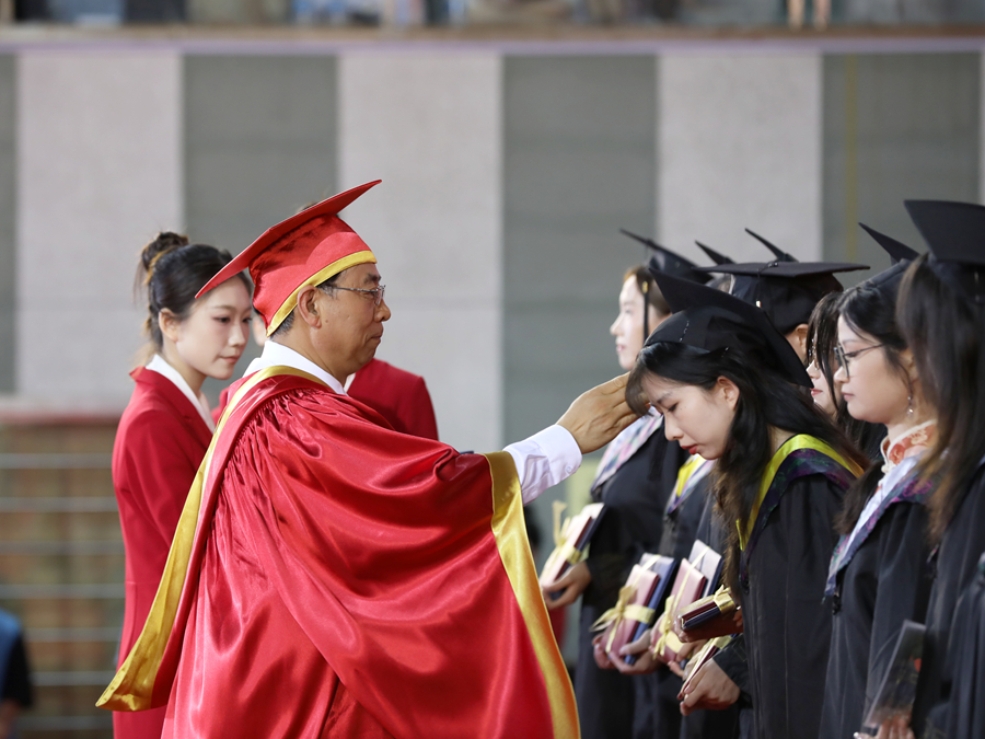 校长杜增吉为毕业生代表授予学位证书并拨穗