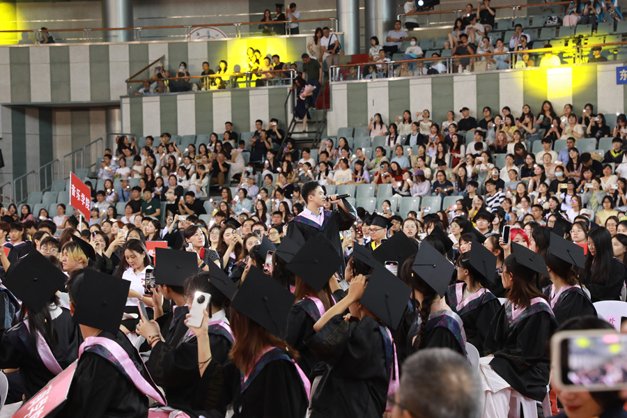 当骊歌响起、凤凰花开,四年的大学时光已悄然走到尾声。在学生快闪节目《毕业骊歌》中,江苏师范大学2025年本科生毕业典礼暨学位授予仪式落下帷幕。回望这段求学时光,从那年初秋的相遇到这个盛夏的告别,毕业生们用智慧和汗水谱写了最美的青春篇章。典礼的最后,校领导和教师代表走到学生中间,与学生话别,祝愿各位毕业生前程似锦、鹏程万里,在新的征程上再创辉煌。