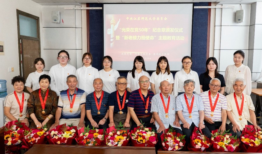 6月18日上午,“光荣在党50年”纪念章颁发仪式暨“新老接力担使命”主题教育活动在我校云龙校区举行。校党委书记芮国强,校党委常委、副校长、组织部部长、统战部部长黄德志,校相关部门和学院负责人出席活动,获得“光荣在党50年”荣誉的老同志及离退休工作部、传媒与影视学院党委师生党员代表齐聚一堂,共同见证这一光荣时刻。