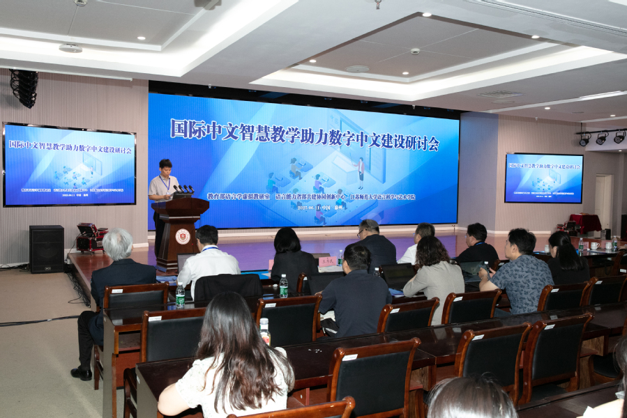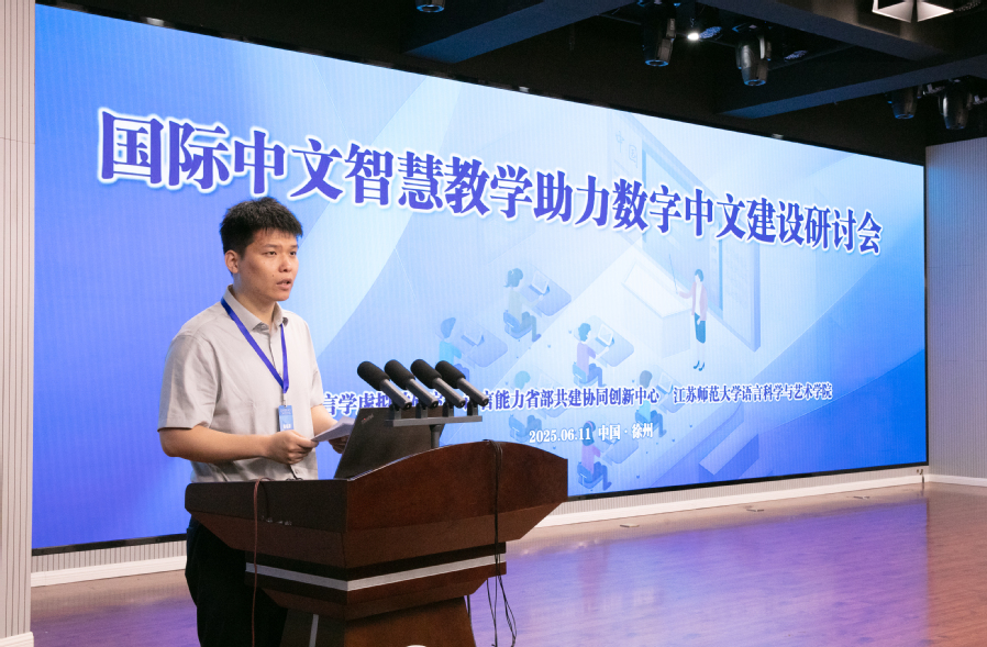 6月11日,由江苏师范大学教育部语言学虚拟教研室、语言能力省部共建协同创新中心、语言科学与艺术学院主办的“国际中文智慧教学助力数字中文建设研讨会”在徐州成功举办。此次研讨会响应教育部、国家语委、中央网信办联合印发的《关于加强数字中文建设 推进语言文字信息化发展的意见》,聚焦国际中文智慧教学如何赋能数字中文建设这一核心主题,来自教育部语信司、江苏省教育厅和南京大学、北京师范大学、华中科技大学、北京语言大学等20余所高校的专家学者和代表,共同探讨人工智能与国际中文教育深度融合的创新路径。