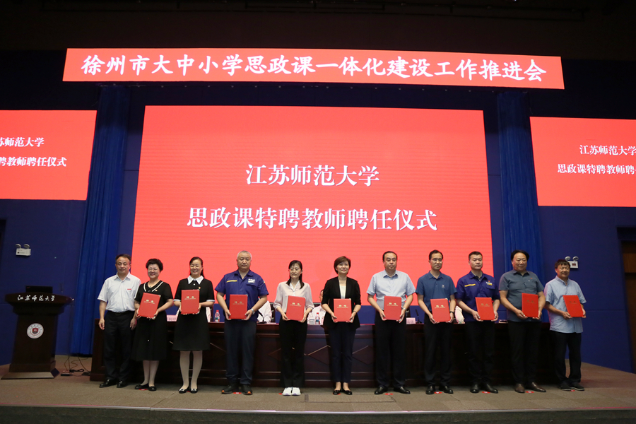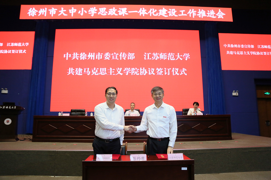 会上,徐州市委宣传部、江苏师范大学现场签署马克思主义学院共建协议,芮国强为贾萍、韩峰、李翠梅、原丰、孟维、张怀红、周长芝、孟庆喜、胡军英、王计兵颁发“江苏师范大学思政课特聘教师”聘书。中国矿业大学马克思主义学院院长阎国华,徐州市鲲鹏路初级中学思政课教师苏维、徐州市太行路小学思政课教师张珮依次发言,围绕如何提升思政课质量总结经验、建言献策。会议还发布了徐州市“博物馆里的思政课”系列课程,邀请了扬州市教育科学研究院副院长王恒富作专家主旨报告。
