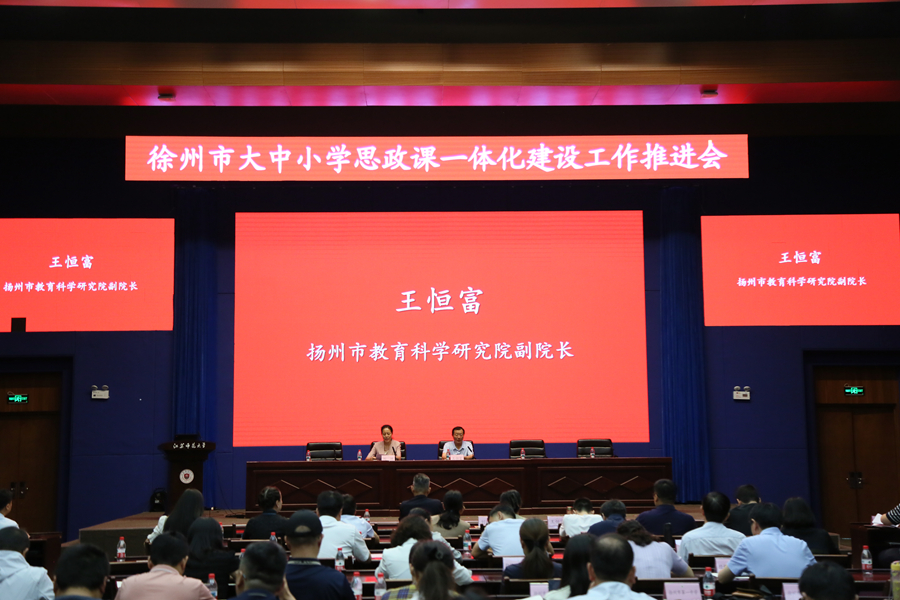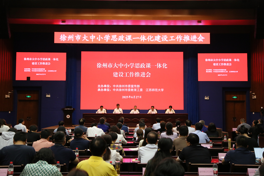 6月27日上午,徐州市大中小学思政课一体化建设工作推进会在江苏师范大学举行。徐州市委常委、宣传部部长刘伟,江苏师范大学党委书记芮国强,江苏师范大学党委副书记蔡国春,徐州市委教育工委书记、教育局局长孙云静,徐州市委宣传部副部长窦铜顺出席会议,徐州各县区教育局负责人,在徐高校党委宣传部部长、马克思主义学院院长,徐州市各县区中小学校思政教师代表参加会议。
