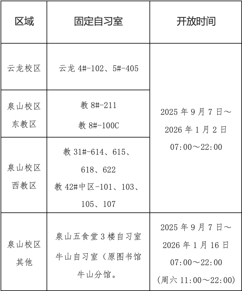 为满足广大学生自主学习的需要,学校开放部分自习室供学生使用,现将有关事项通知如下:
