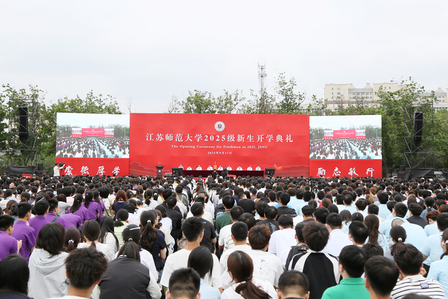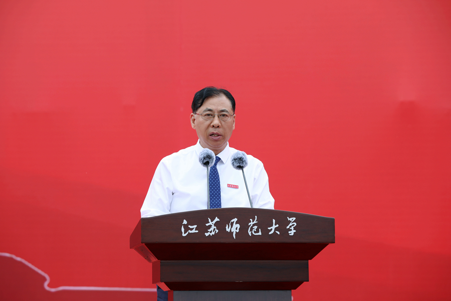 典礼在升国旗仪式中拉开帷幕,校长杜增吉发表了题为《以奋斗之姿,赴时代之约》的讲话,代表学校全体教职员工,向全体新生表示热烈欢迎,向辛勤培育广大学生的家长和老师,致以衷心感谢与崇高敬意。杜增吉勉励同学们,江苏师范大学是一所“初心如炬、使命如磐”“卓越笃行、追求一流”“锐意创新、敢为人先”的大学,同学们要“心系家国”,做矢志报国的苏师人;要“挺膺担当”,做开拓创新的苏师人;要“脚踏实地”,做行稳致远的苏师人。