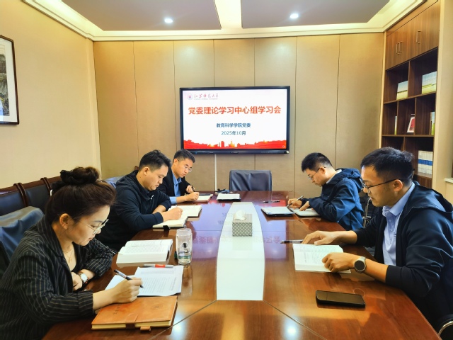 10月10日,教育科学学院(教师教育学院)党委理论学习中心组召开专题学习会,深入学习《习近平谈治国理政》第五卷相关内容。学习会由学院党委书记孟德会主持,党委理论学习中心组全体成员参加集中研讨。