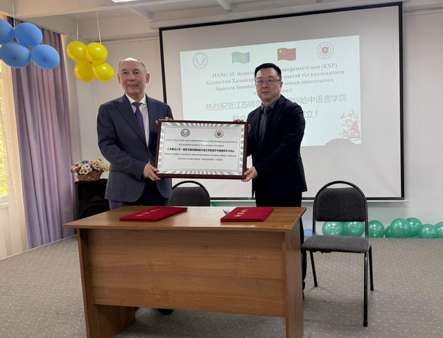 近日,江苏师范大学与国际哈中语言学院在阿拉木图联合举行“留学中国预科学习中心”揭牌仪式,标志着我校首个海外来华留学预科中心正式启用。哈萨克斯坦国家电视台对仪式全程跟踪报道,并在黄金时段播出,进一步扩大活动影响。