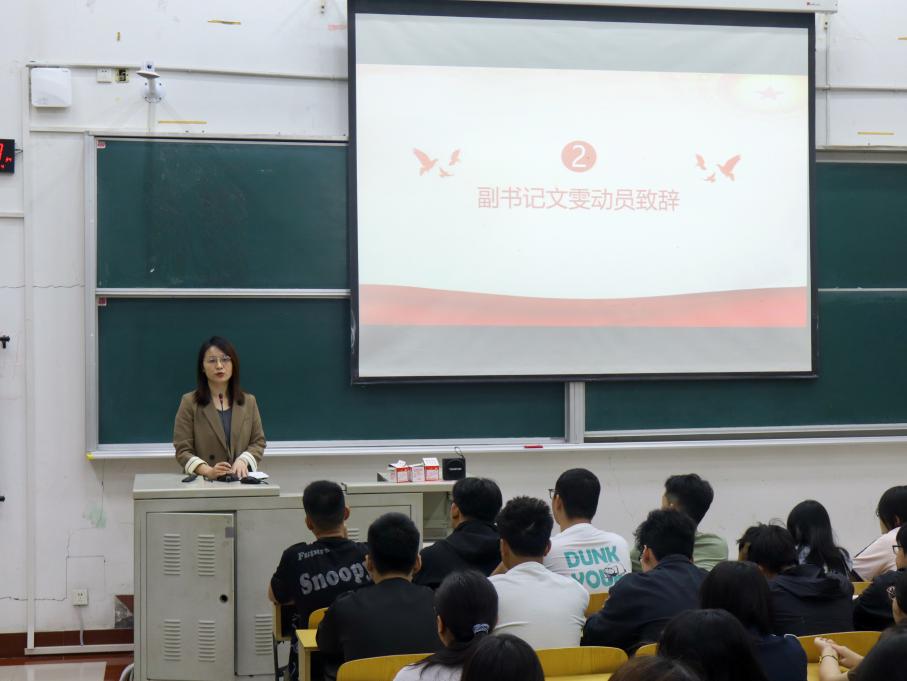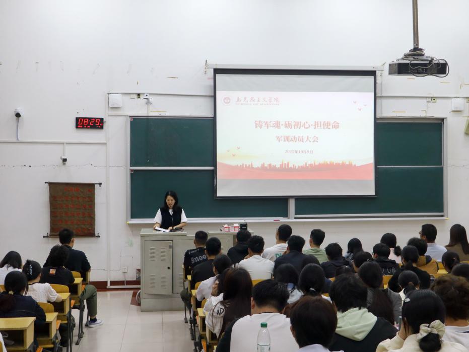 10月9日上午,马克思主义学院在32号楼103阶梯教室隆重举行2025级新生军训动员大会。学院党委副书记文雯、学工办主任戴笑笑、团委书记沈晓强及全体2025级新生参加大会。会议由戴笑笑主持。