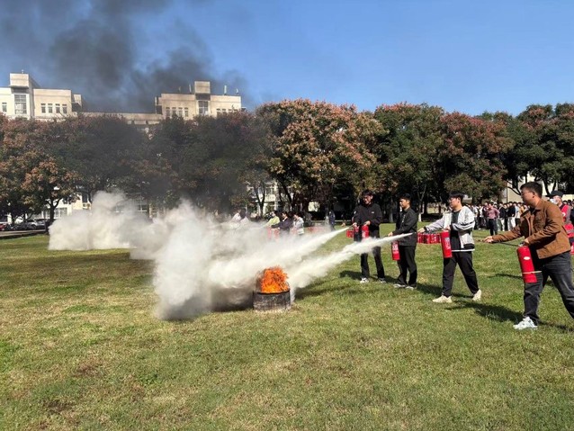 针对理工科学院新入学研究生和教职工开展消防演练是我校的传统,此次消防培训和演练采用“理论+实操”相结合的方式,不仅使师生掌握了规范的灭火操作方法,也有效提升了他们在突发事件中的应对能力,为营造更加安全的校园环境提供了有力支撑。