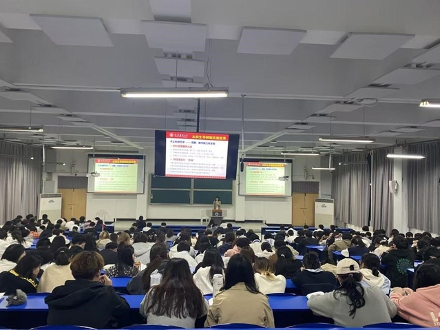 会议伊始,刘院长强调,学院始终将本科生培养作为核心任务,积极整合优质资源,为学生提供全方位、高水平的指导,力求为每一位学生的成长成才保驾护航。接着,赵爽老师围绕《本科生导师制实施方案》展开了全面且深入的解读,她从导师制的具体实施流程到相关要求进行了细致介绍,让同学们对导师制有了更为直观、准确的理解,为后续与导师的互动交流奠定了坚实基础。最后,刘院长鼓励学生主动联系导师,充分利用其专业知识和经验,结合个人实际制定职业规划,加快成长步伐。