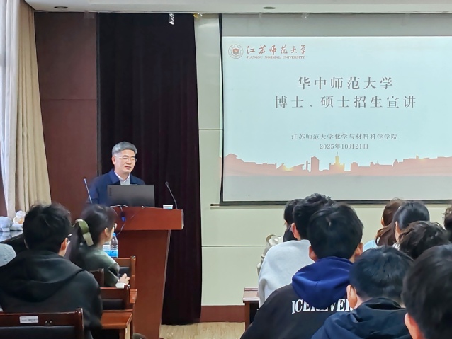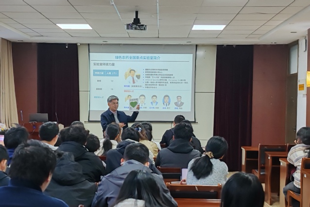 会上,华中师范大学化学学院余广鳌教授首先从学校定位、院史沿革、专业发展、科研平台和人才队伍等方面介绍了学院的基本情况,随后余老师为同学们重点介绍了华中师范大学绿色农药全国重点实验室的研究方向和人才培养,最后详细解读了学院硕士研究生和博士研究生的招生政策。宣讲会结束后,余老师与参会学生进行了针对性的交流。