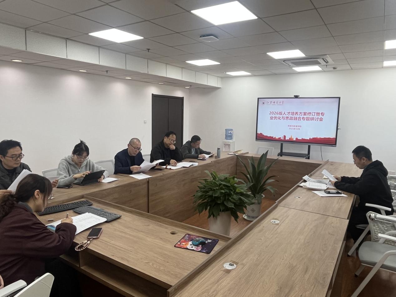 会议传达了《江苏师范大学关于修订2026版本科人才培养方案的指导意见》等文件,明确了修订工作的时间节点与具体要求。与会人员结合学科前沿与行业动态,分析了现有人才培养方案存在的问题,围绕目标定位、课程体系优化、实践教学强化、产教融合深化等方面提出修订建议。大家一致认为,需在夯实专业核心课程的基础上,引入AIGC赋能内容制作等前沿课程,打破现有专业的壁垒,构建跨学科、跨专业融合的课程体系。