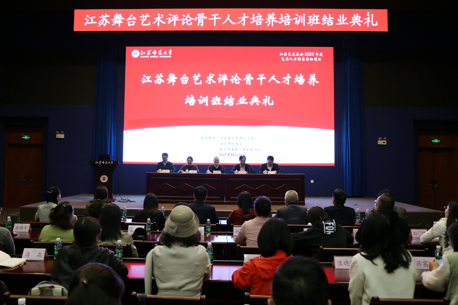 10月29日上午,江苏艺术基金2025年度艺术人才培养资助项目——江苏舞台艺术评论骨干人才培养培训班结业典礼在我校举办。江苏省艺术评论学会会长、江苏省文化与旅游厅原一级巡视员方标军,我校校长杜增吉,江苏省文化与旅游厅艺术处副处长毛小菁,昆山市文体广电和旅游局副局长金磊等出席典礼。