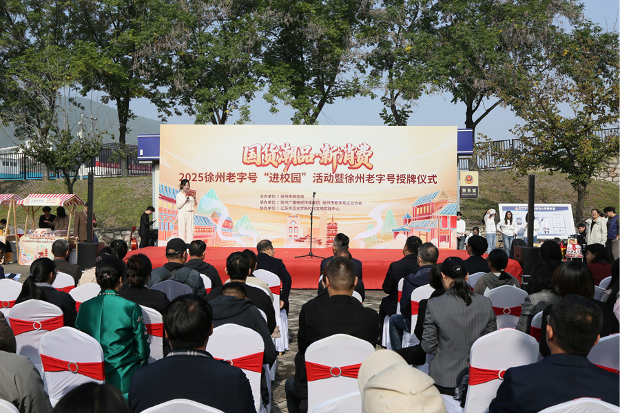 11月1日,由徐州市商务局主办,徐州广播电视传媒集团、徐州老字号协会承办,江苏师范大学新时代文明实践中心协办的“国潮国货·新消费”徐州老字号“三进三促”活动暨徐州老字号授牌仪式在我校举行。校党委常委、宣传部部长孟召学,徐州市商务局党委委员、四级调研员张宗强,徐州广播电视传媒集团党委委员、副台长李为东出席活动。
